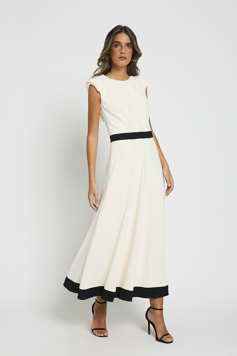 Vestido confeccionado en lino con escote en pico y peplum que realza la cintura. Su corte entallado y la textura del tejido aportan una silueta femenina y elegante, ideal para celebraciones diurnas o looks de temporada. Versátil, cómodo y favorecedor, es perfecto para eventos familiares.